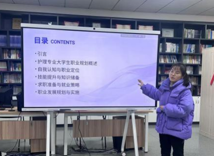 交流会上,耿南南同学从个人在校和在职期间的奖项收获与心得、大学期间的专业规划以及护理学生成长建议三个方面进行分享。耿南南同学建议大家制定清晰的学习和发展计划,合理安排时间,努力地去实现自己的目标。她鼓励大家,在学习方面,养成良好的学习习惯,注重课堂学习,积极参加学科竞赛和科研项目,提高专业能力,培养团队合作精神和创新思维。在实践方面,积极参与,勇于创新,提高自身综合素质,积累经验。最后,主讲人希望同学们以此次分享会为起点,不断努力,昂扬向上,为社会做出贡献,实现自己的人生价值!