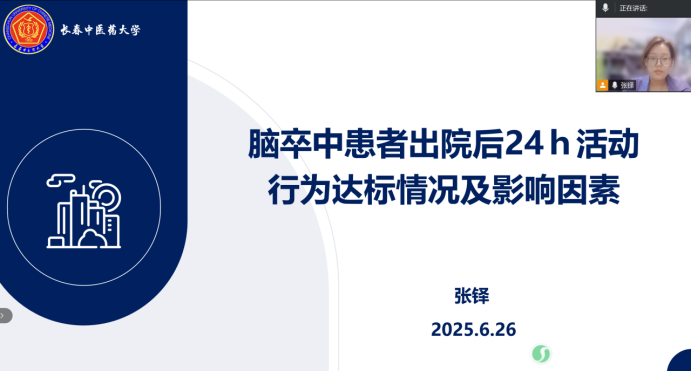 张铎阐述脑卒中患者24小时活动行为达标率较低,在未来需为高龄、低功能、社会支持不足及运动信心缺乏的脑卒中患者制定个性化干预措施。